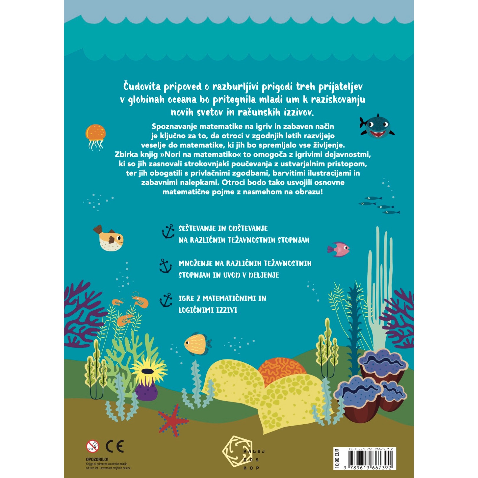 Čudovita pripoved o razburljivi prigodi treh prijateljev v globinah oceana bo pritegnila mladi um k raziskovanju novih svetov in računskih izzivov! Zbirka knjig Nori na matematiko omogoča zabavno učenje matematike z igrivim in ustvarjalnim pristopom. Privlačne zgodbe, barvite ilustracije in zabavne nalepke otroke pritegnejo k raziskovanju in osvajanju osnovnih matematičnih pojmov z nasmehom na obrazu! Knjiga je primerna za starost 7-8 let. Znižana prednaročniška cena velja do 29.8.2025!